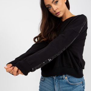Blackhoodie with sequins on the sleeves RUE PARIS .